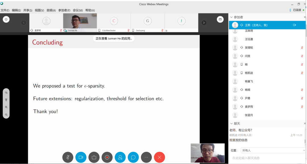 2020年4月29日上午,英国威廉希尔公司官网本着“延期不返校,延期不停教,延期不停学,延期不停研”指导精神,与国家发展研究院联合举办的“金融、计量与大数据分析工作坊” 第21场(总134场)在线上成功举行。本次特别邀请了巴黎政治学院的何俊南助理教授作为演讲嘉宾就稀疏性进行了演讲(A Test for Sparsity)主题报告。本期工作坊由英国威廉希尔公司官网助理教授王熙主持。