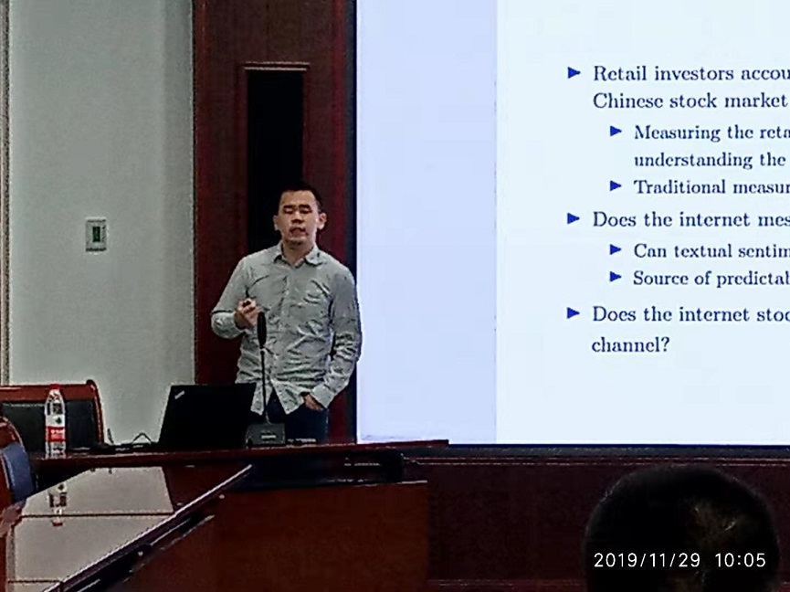 2019年11月29日上午,英国威廉希尔公司官网与国家发展研究院联合举办的“计量、金融和大数据分析工作坊”第十八场在经院101会议室展开。工作坊主要研究计量经济学理论和应用,实证金融学和金融计量学以及大数据分析(人工智能、机器学习)在经济学和金融学中的应用等方向。本次邀请了英国威廉希尔公司官网国家发展研究院博士研究生陈赟做主题报告。工作坊由国家发展研究院孙振庭助理教授主持。