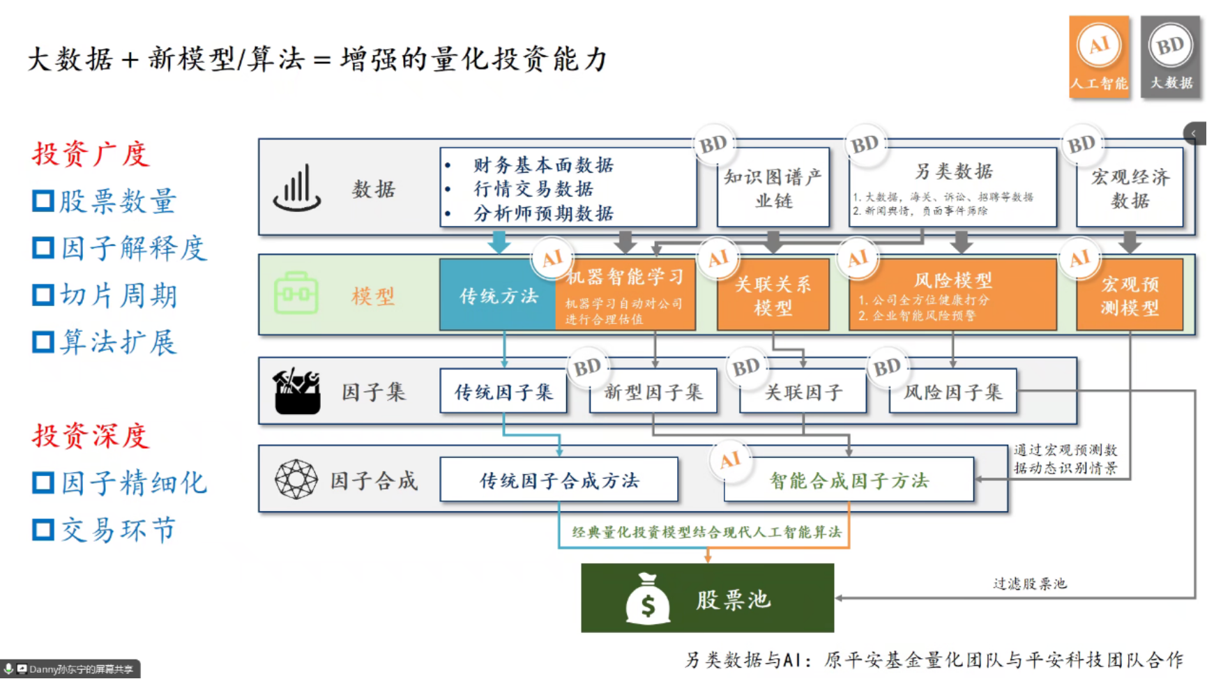 孙东宁从自身多年量化投资领域的工作经验出发,介绍了人工智能的发展历程,人工智能在量化投资领域的运用以及自己的研究方向。他谈到,大模型让量化投资更加高效,能提供更加新颖的数据,AI与量化投资的结合在未来十分重要。