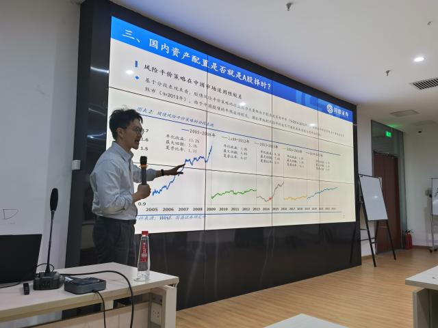 林志朋详细讲解了国内大类资产配置的特点、约束及研究思路,并分享了国盛证券在这一领域的最新研究成果和实践经验。他重点介绍了国内资产配置在保险、FOF(基金中的基金)、银行理财等领域的应用。林志朋指出,国内资产配置往往局限于股票和债券市场,并详细对比了中美市场在波动性和收益率方面的差异。他谈到中国市场不能简单照搬国际上的全天候策略,因为中国市场的夏普比率较低,风险评价难度大。