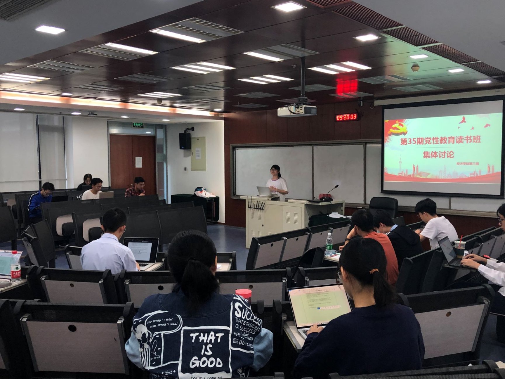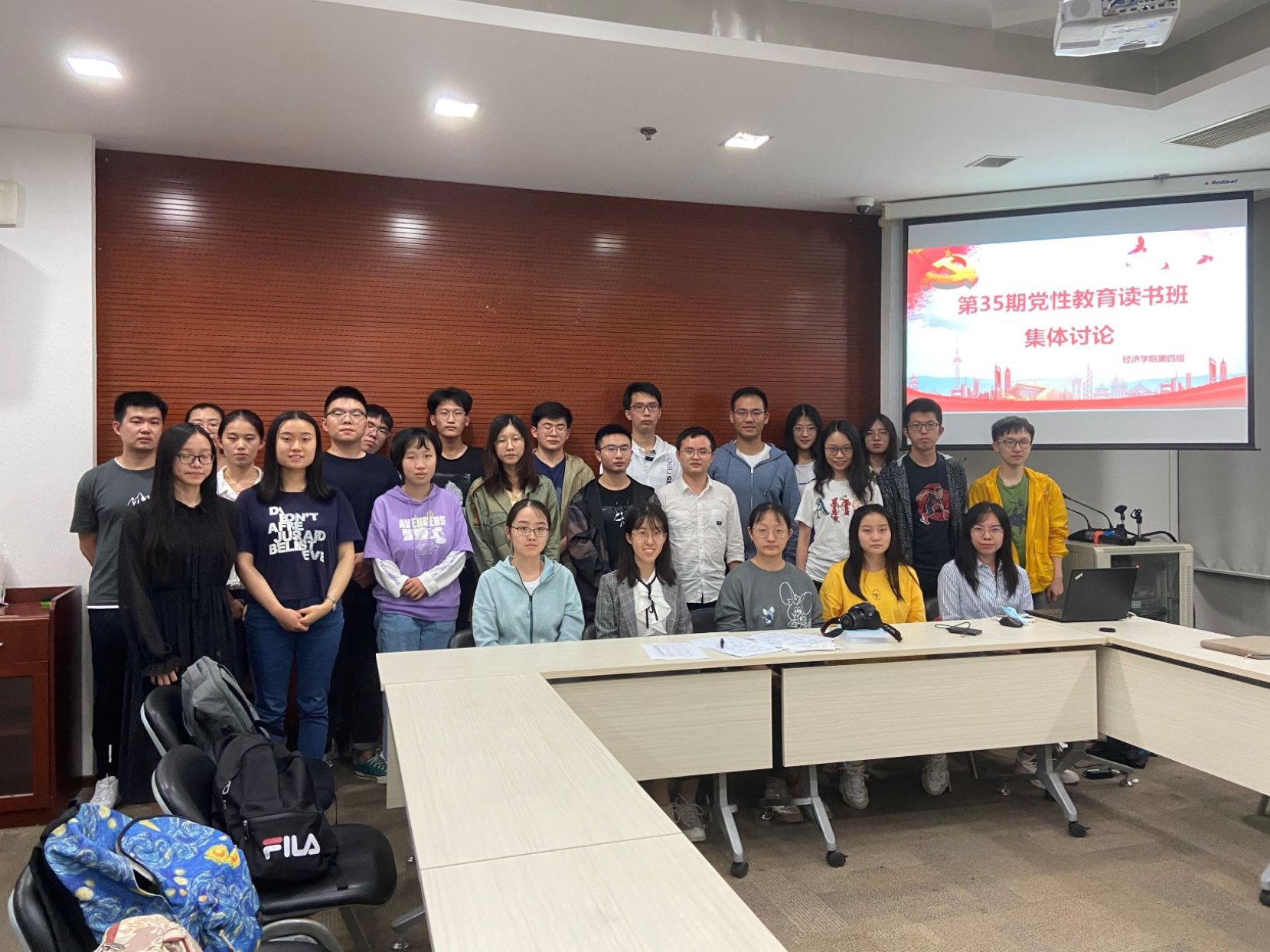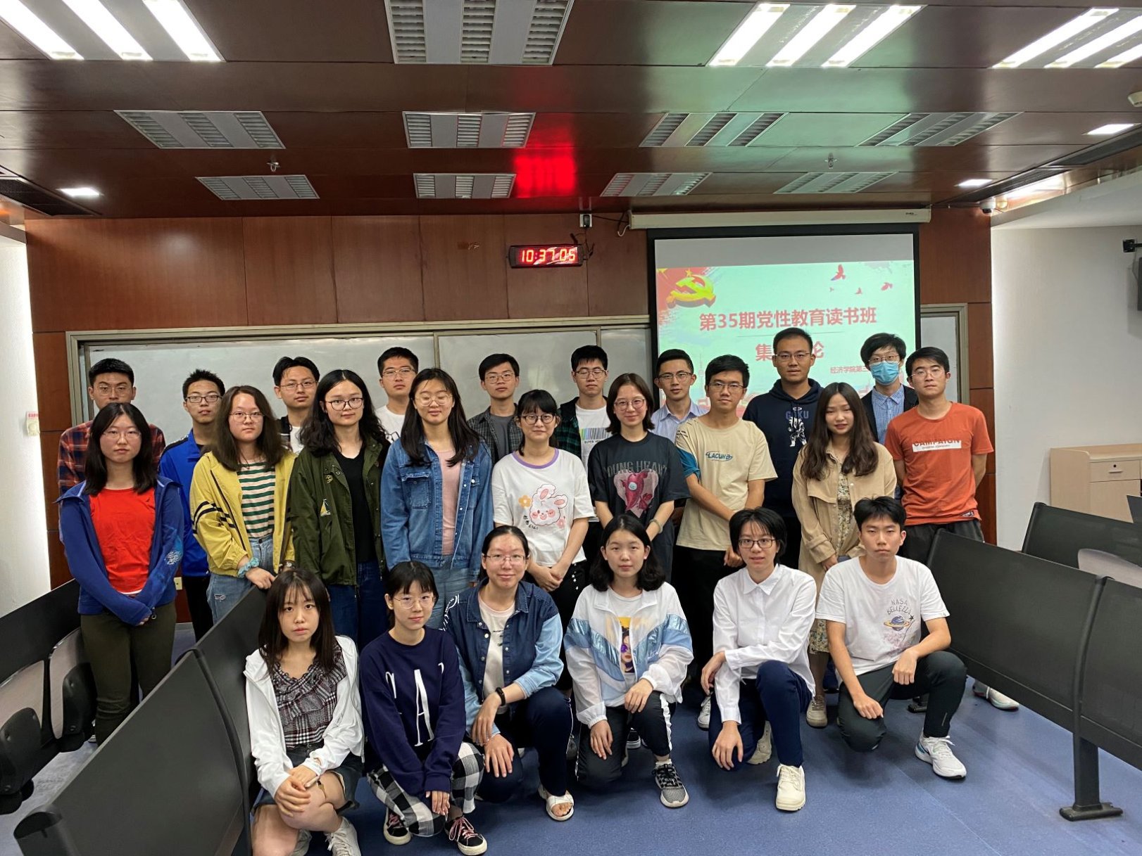 集体讨论中,各小组从不同角度切入主题展开讨论。9月23日上午第一小组开展讨论,该小组主要由研究生组成,学员们发挥专业优势,扎根学理,运用经济学、管理学、历史学的相关知识对党的先进性、凝聚力、自我革命能力和组织动员能力进行了探讨,充分展现了学术水平与政治素养。9月25日上午与9月26日晚上第二和第四小组进行了讨论,这两个小组由2019级本科生党支部组成,支部书记赵煦风全程参加,并予以点评。9月26日第三小组进行了讨论,并特别设计了“梦回国庆阅兵日,天安门前红旗扬”和“危难时刻看本色,大事难事显担当”两个专题,邀请了曾参与国庆群众游行和抗击新冠疫情的学员们深度分享见闻感悟。9月27日第五小组开展讨论,通过幻灯片展示了自己对党性修养必要性和修养目标的理解。