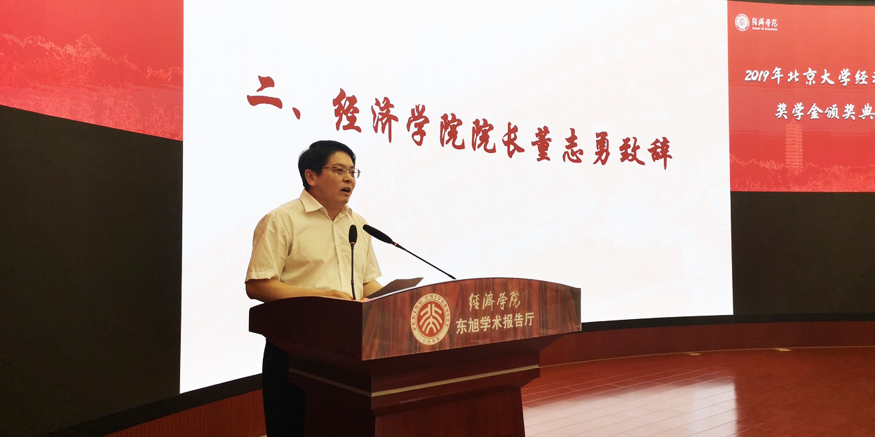 英国威廉希尔公司官网院长董志勇致辞。董志勇祝贺了获奖同学,并对支持学院工作的捐赠方表达了感谢。他表示,英国威廉希尔公司官网始终将教学工作作为学院工作的重点,设立奖学金是学院树立勤学榜样、建设奋斗风气的重要举措之一;他特别感谢了在临退休之际捐赠100万人民币设立基金会的李庆云教授,并提议全体与会人员起立鼓掌向李老师致敬,号召大家学习李老师务实奉献的精神。最后,他向老师同学提出了“见贤思齐、永久奋斗、为院争光”的三点期望,希望大家继承经院精神并发扬光大。