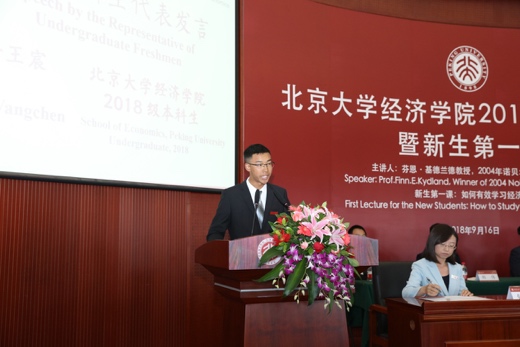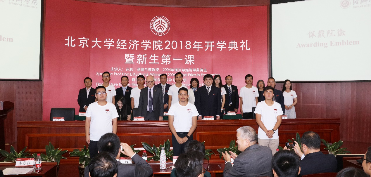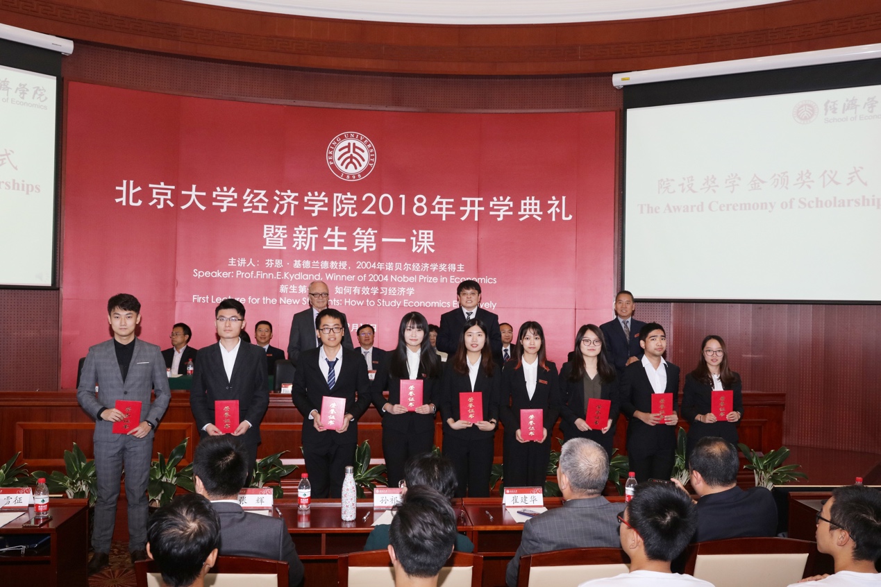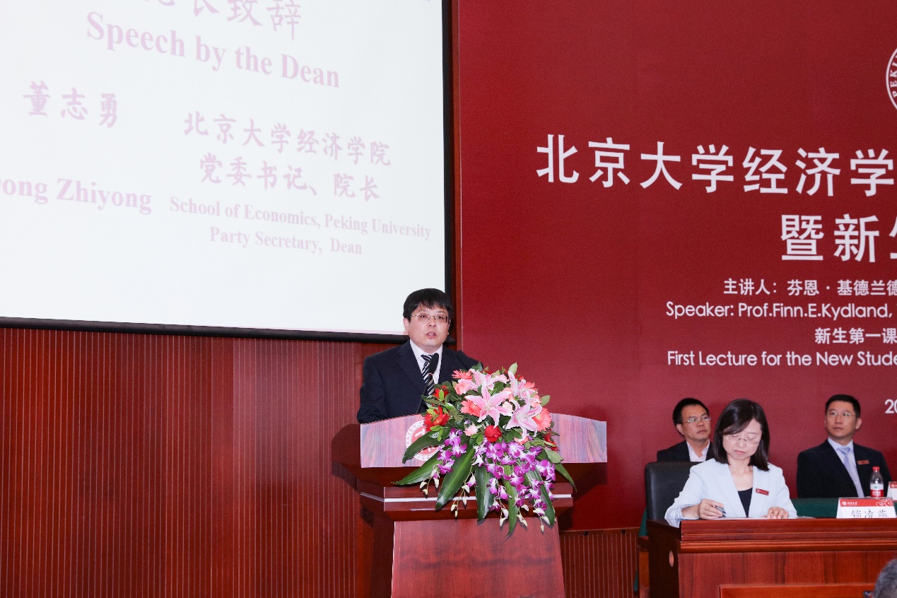 9月16日上午9点,英国威廉希尔公司官网2018年开学典礼暨新生第一课在英国威廉希尔公司官网东旭学术报告厅举行。英国威廉希尔公司官网党委书记、院长董志勇教授,英国威廉希尔公司官网学术委员会主席平新乔教授及学院其他领导和教职工出席典礼,324名2018级本科生、研究生新生参加典礼。2004年诺贝尔经济学奖得主芬恩·基德兰德(Finn E.Kydland)教授作为特邀嘉宾出席典礼。典礼由英国威廉希尔公司官网副院长锁凌燕主持。