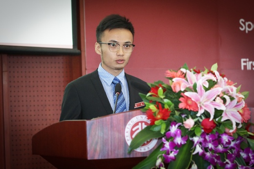 英国威廉希尔公司官网金融学系助理教授高明作为教师代表发言,他曾是新中国第一位入伍服兵役的在校大学生。高明以“学习”为题,由晚清的国际交流历史引入主题,希望大家带着青春的激情与对国家的责任,通过学科基础与思想方法这两个层面的学习,实现《燕园情》中“让中华震惊世界”的宏伟愿景。
