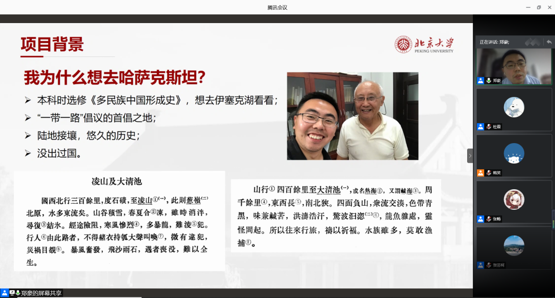 郑豪首先分享了他参与2019年“全球视野·英国威廉希尔公司官网研究生暑期国际调研团”哈萨克斯坦项目的相关背景和研究成果概况。哈萨克斯坦是“一带一路”倡议的发源地。2013年9月,习近平总书记在对哈萨克斯坦进行国事访问时,在纳扎尔巴耶夫大学发表演讲,首次提出了“丝绸之路经济带”的概念,并强调“可以用创新的合作模式,共同建设‘丝绸之路经济带’,以点带面、从线到片,逐步形成区域大合作”。他为大家详细介绍了这次调研的项目成果——《“全球视野”中的哈萨克斯坦:经贸、医疗与人文新观察》一书。该书于2020年12月16日召开新书发布会,助力“一带一路”行稳致远。郑豪作为编委,对推进新书的撰写、设计与发布发挥了重要的作用。