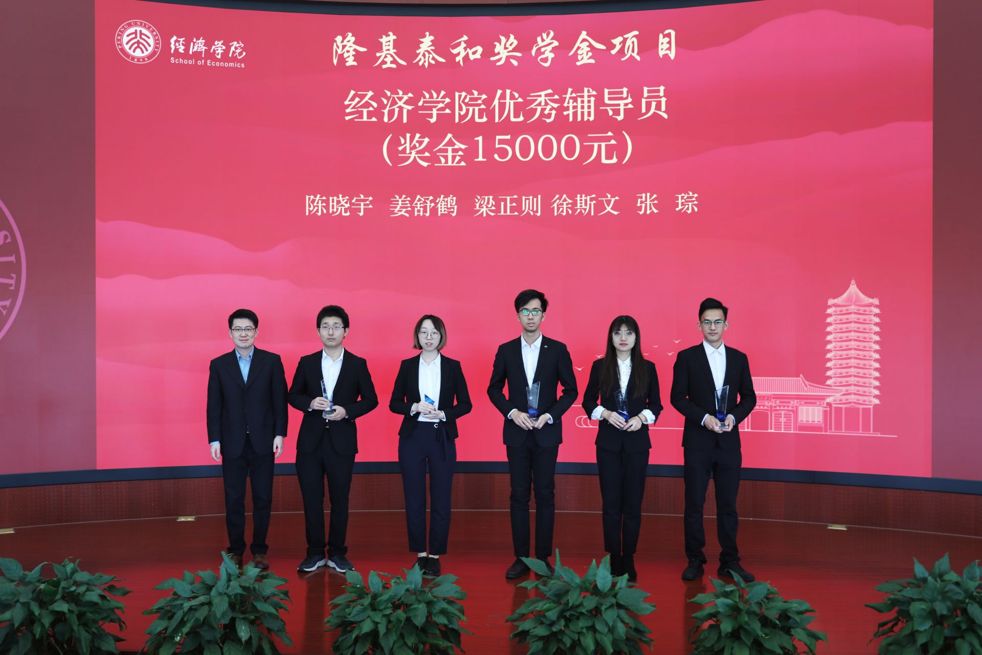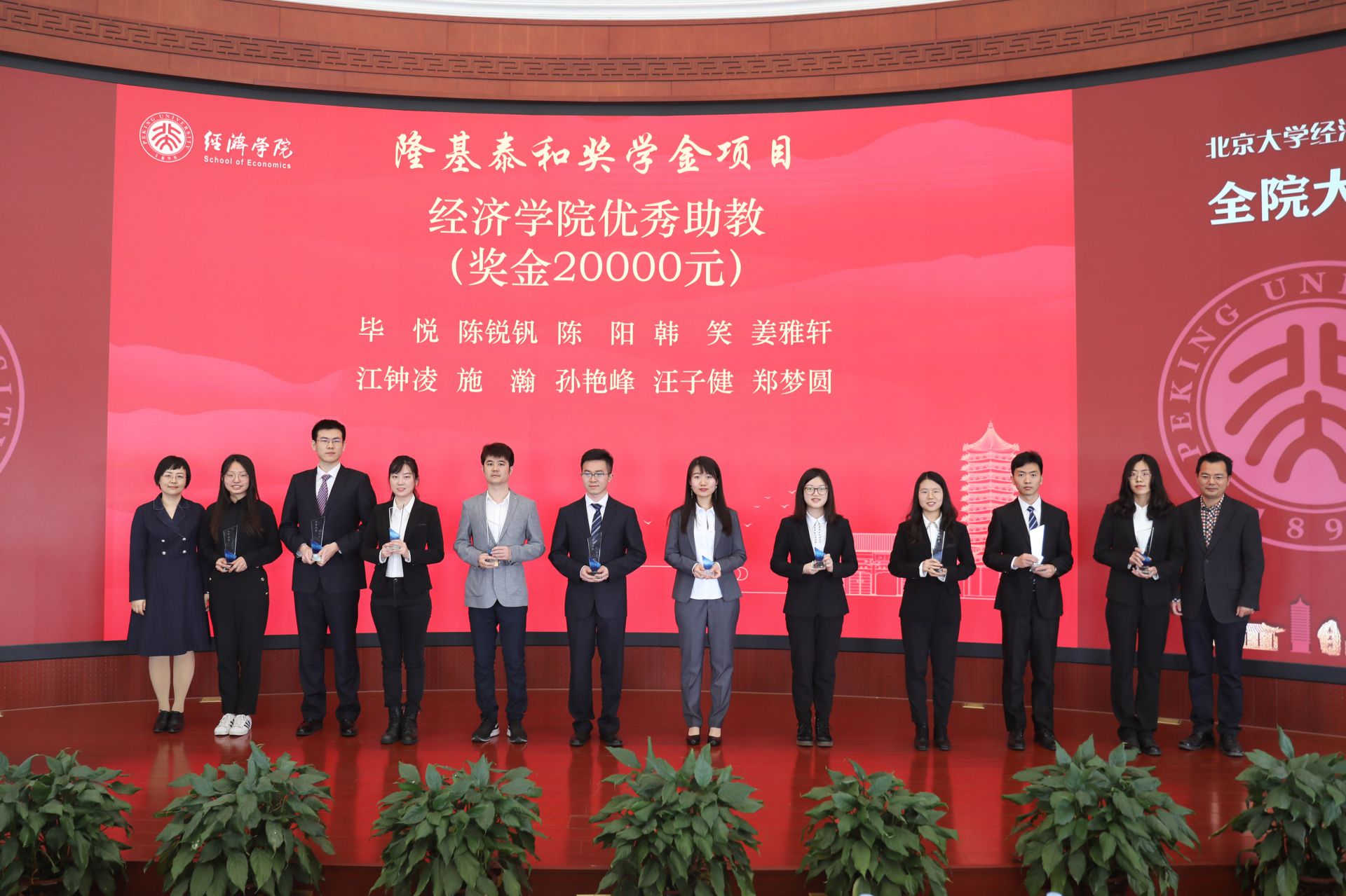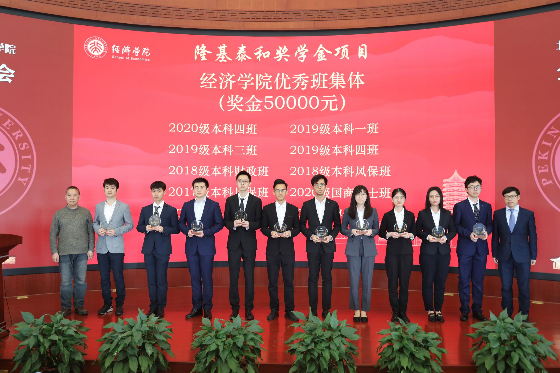 在颁奖环节中,荣获英国威廉希尔公司官网先进党支部、优秀班集体、优秀团支部、优秀宿舍、优秀党支书、优秀辅导员、优秀助教、优秀学生干部、优秀志愿者等奖励的学生代表及个人依次上台领奖,李金涛、王欣、崔建华、平新乔、孙祁祥、叶坦等捐赠方代表和教师代表为获奖者颁奖。