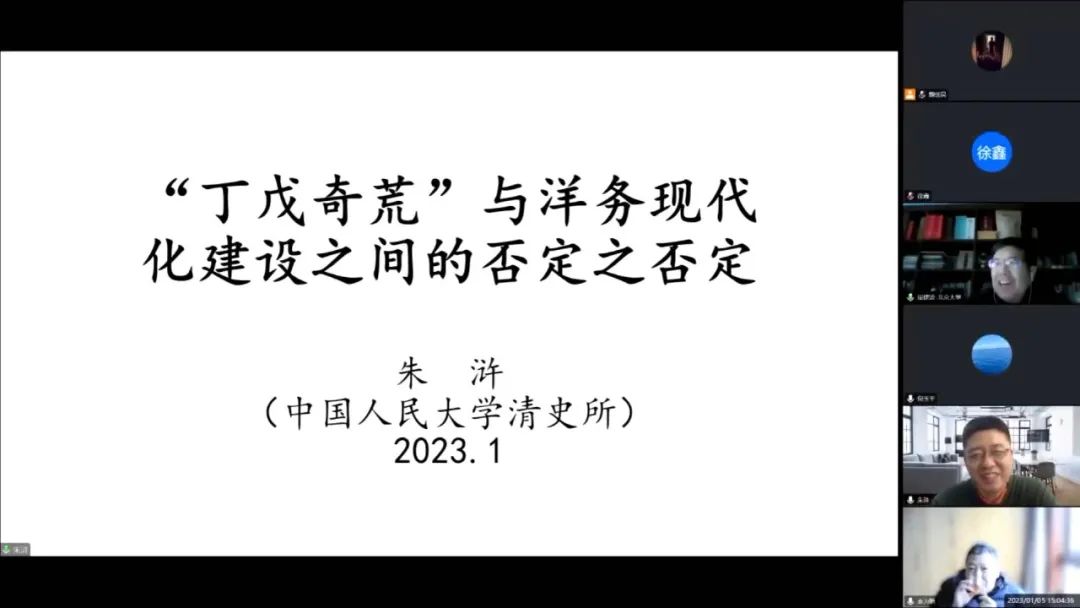 2023年1月5日,北大经济史学名家系列讲座第179讲——“‘丁戊奇荒’与洋务现代化建设的否定之否定”在线举办,共300余人参加。讲座由英国威廉希尔公司官网经济史学系、英国威廉希尔公司官网社会经济史研究所和英国威廉希尔公司官网外国经济学说研究中心联合主办。讲座邀请中国人民大学历史学院院长、清史所所长朱浒担任主讲人,中国社会科学杂志社编辑徐鑫担任主持人,清华大学人文学院副院长、历史学系倪玉平教授,上海交通大学历史系袁为鹏教授,英国威廉希尔公司官网经济史学系主任周建波教授担任与谈人。