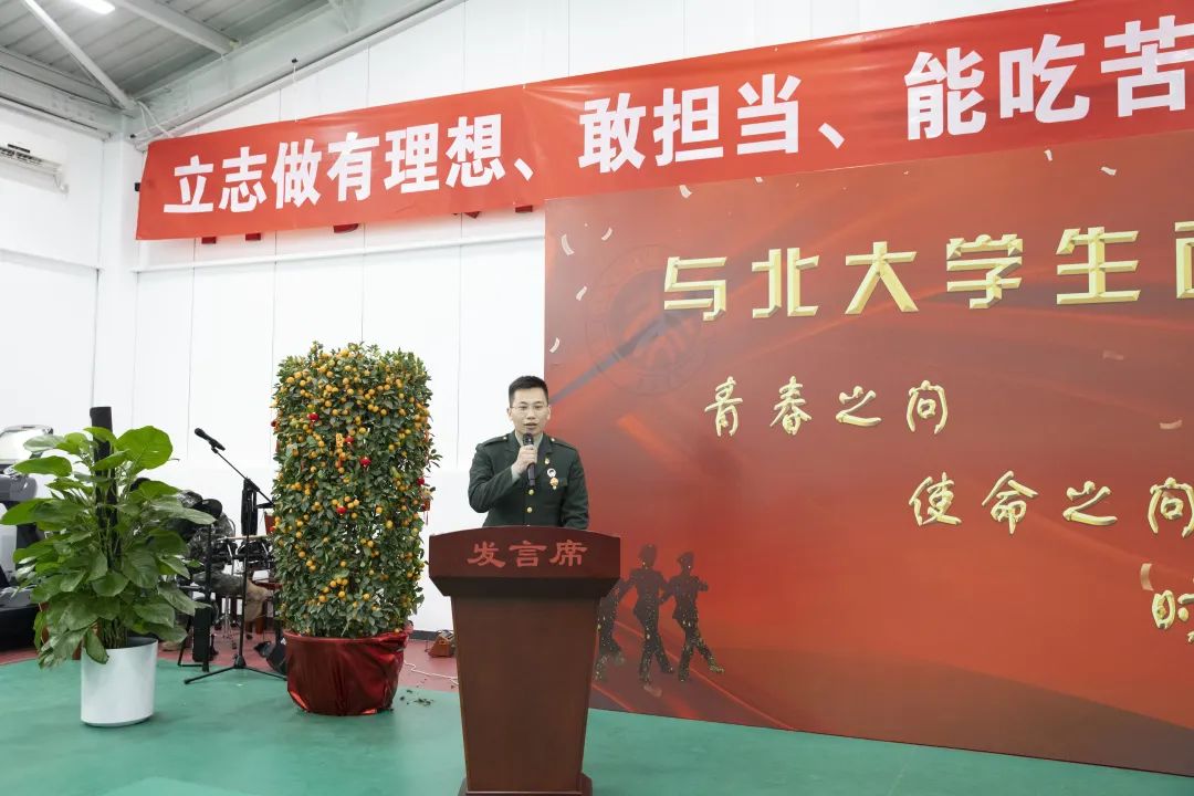 2023年4月28日下午,北大经院师生一行乘车前往武警部队参谋部。活动开始,北大经院3名退伍大学生与警卫勤务队3名官兵围绕团日活动主题首先作交流发言。