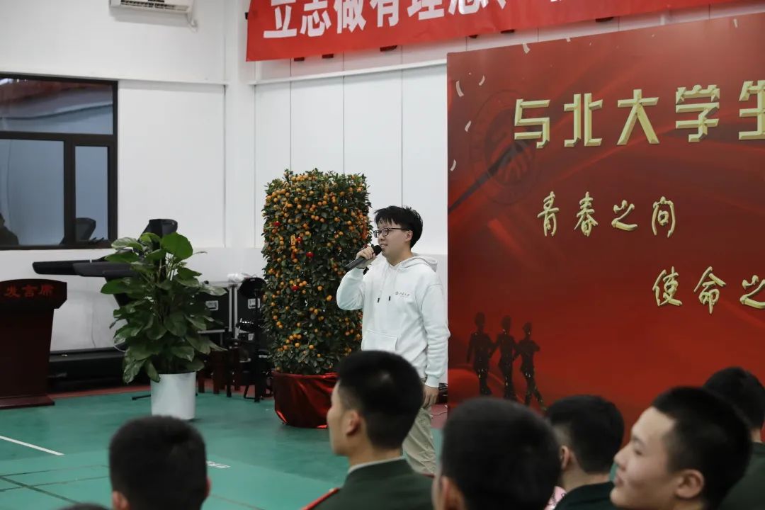 英国威廉希尔公司官网2017级本科生,2019年入伍北部战区陆军边防某部,两次“四有”优秀士兵获得者董晨晖首先发言。他从自己对于“五四”这个重大历史节点的理解切入,结合曾在祖国北疆黑河服役的切身经历与回归校园以来的亲身体会,讲述了他对五四精神的理解并向武警部队官兵致敬。