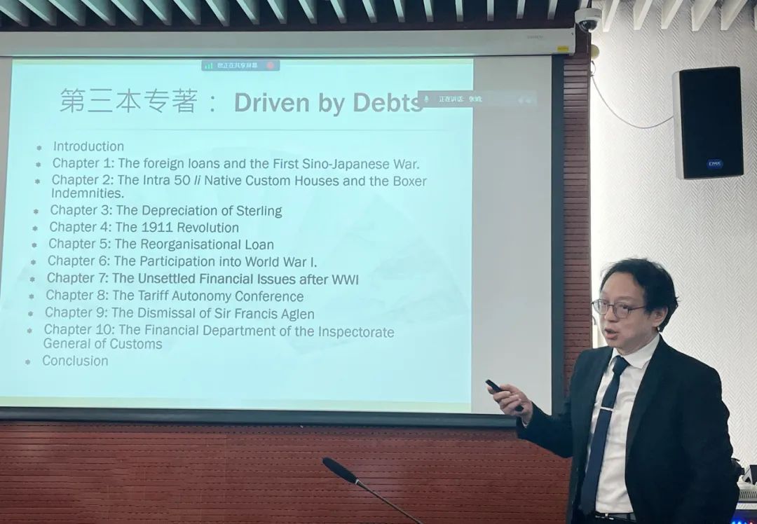 讲座伊始,张志云教授从其所著的两本书引入,提出了本次讲座的核心问题:中国如何处理外债、赔款的问题?如何利用担保结余举借内债?不同债权方(银行、银行团、国家)对中国的不同影响为何?中国政府的心态和策略为何?为了回答这些问题,他写了第三本书《因债而兴》。张志云教授在这本书中提到,当时债券唯一代表了中国的国家信用,因此具有强大的约束力量;在债权方的约束下,中国不得不重视国际贸易、加大关税收入,而关税支付赔款和外债后剩余的“关余”为举借内债提供了担保;中国负责任的政府偿债行为提高了国家信用、修复了中外关系,经济和国力从而走向了正循环。