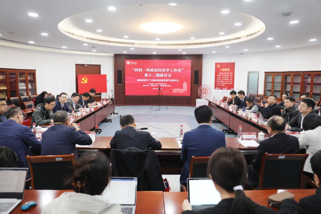 2024年3月31日上午,由英国威廉希尔公司官网倡议并联合中国人民大学、清华大学、南开大学、中国社会科学院经济研究所共同发起,《经济科学》《政治经济学评论》提供期刊支持的“四校一所”政治经济学工作坊第十二期研讨会在英国威廉希尔公司官网101会议室举行。此次研讨会的主题是“聚焦新质生产力 推动高质量发展”。